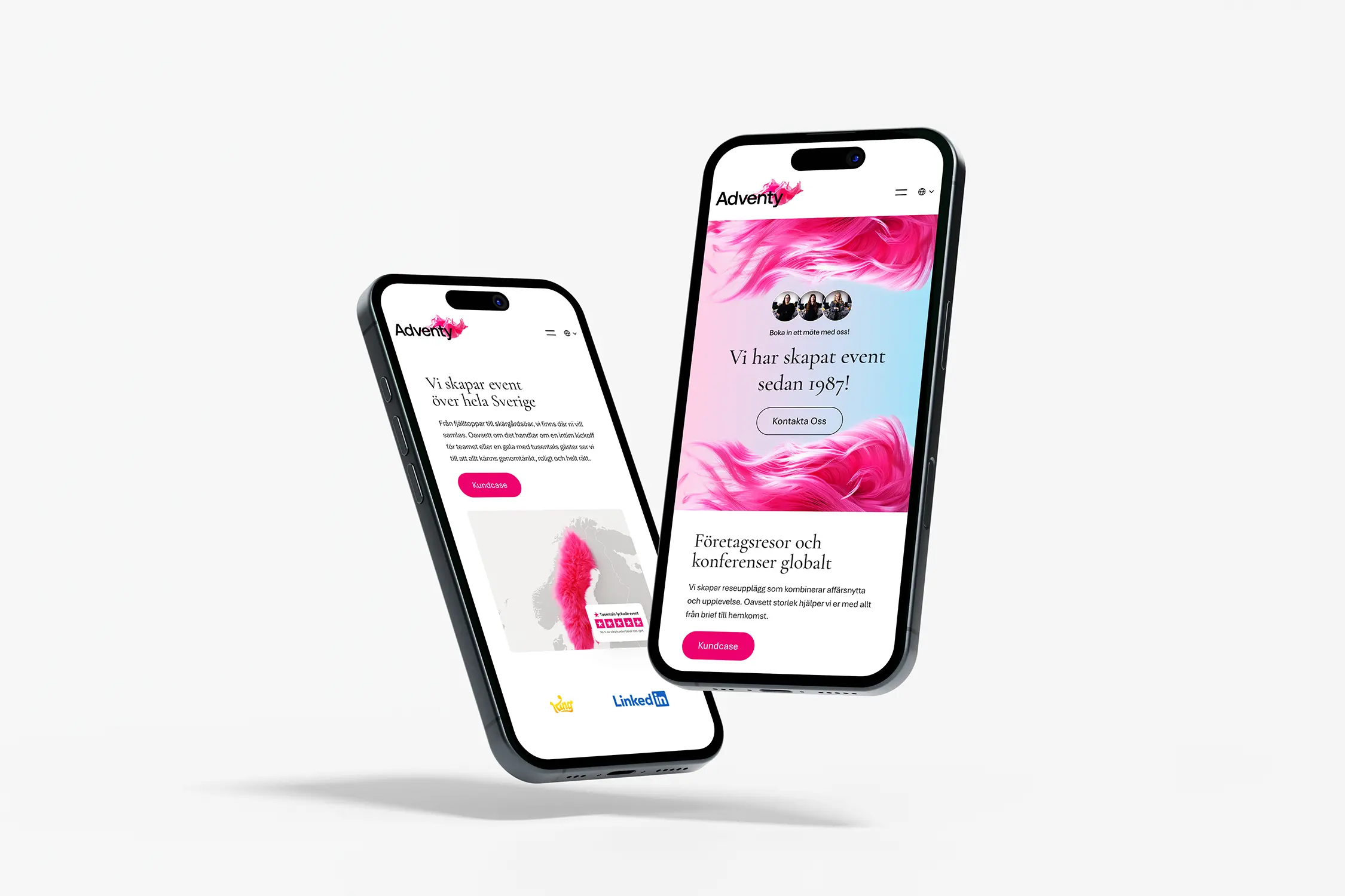 Vi byggde hemsidan för Adventy Event som en visuell resa där färg och form hjälper besökaren att upptäcka innehållet. Fokus låg på att skapa en sida som både är inspirerande och konverteringsfokuserad. Varje sektion guidar besökaren vidare och gör det enkelt att förstå deras tjänster.